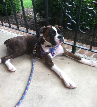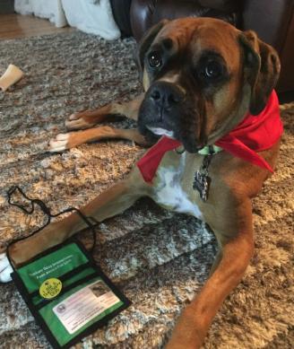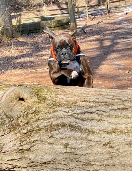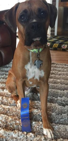 | Donna, Arya is something else! She's a very very busy girl! I want you to know just how loved she is and the great life she's living. She goes to doggy daycare at least twice a week and is one of the most playful dogs there. She gets along with everyone there! She's also very busy with different classes that I keep her enrolled in. One of the biggest surprises for me is just how great she is at nose work! She's been through a few nose work classes and she really excels at it. She gets very excited and seems to really enjoy it. A couple months ago she attended her first odor recognition test. She got two out of three and only missed the last one due to exhaustion. She can now compete in nose work trials. She also aced her AKC K9 Good Citizen test. She passed that one with flying colors so we took on the extra challenge of testing for Therapy Dogs International. I didn't really expect her to pass because, like most boxers, she's still a bit of a jumper. She proved me wrong again and knocked it out of the park! She's now a registered therapy dog and I can't wait to see her bring a fraction of the joy she brings me to others. Her most recent adventure is in agility classes. She's been taking classes for a few weeks now and she's been progressing very well. The instructor is very impressed with her! She was initially pretty scared of the tunnel but I think we've conquered that. She tackles each new obstacle better than the last! I can't begin to describe the amount of joy she brings me. The personality in her is just like no other. She makes me laugh more than I ever thought possible each and every day. |