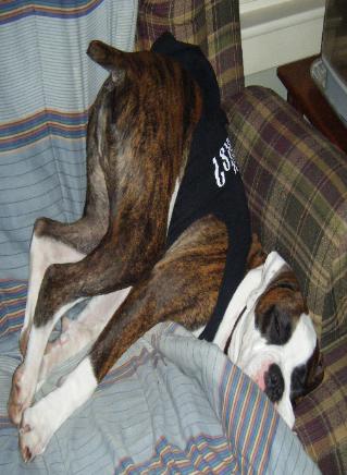 | Donna, First of all, I would like to thank you for allowing us the opportunity to adopt one of your puppies. As you know, we adopted one of your puppies from your previous litter. The puppy that we adopted was named Willie by you and was the son of Calamity and Harley. We have changed his name to Brady Words can not describe how much we love Brady. He is the most loveable dog that we have every had. He gives us hugs and kisses on a daily basis. He wraps his arms around our shoulders to give us a huge just like Harley did when we visited you. His posture reminds us of Calamity, especially how he sits. He always wants to be right by our sides. Everyone that meets him says he is the sweetest dog. In addition to him loving us, he also loves to be around other dogs. He is always very friendly with other dogs. He has a brother who is also a boxer and he plays with him all day. Although his is very friendly, he is also very protective of myself and my husband. I find this to be very comforting. In addition, he is a very healthy and active dog. He is full of muscles and has such a wonderful thick coat. Our vet told us we are very lucky to have adopted a dog from such a great breeder and we could not agree more. Our dog trainer also compliments his demeanor as well as his physical appearance. Finally, I would and do recommend you as a breeder and your puppies to everyone. When the time comes that my husband and are going to adopt another puppy, it will definitely be one of yours. Once again, we thank you for allowing us the opportunity to have our hearts touched so much by Brady. I have attached some pictures of him and would be honored if you would put them and this letter on your web-site. Sheila and Mike |