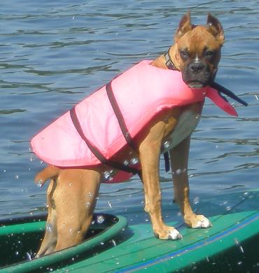 | Hi, We bought Tif from you in April. Her name is now Ginger. We stayed with the spice family, since our old boxer was Cinnamon. I have been wanting to email and tell you how great she is doing. You will see from the pictures she is very active and probably hit one of the jackpot prizes with getting us. She gets to vacation every weekend in Lake George (NY) and I think she would rather be there all the time. We love her to death. She can be a little wild sometimes, but of course she is a boxer puppy. I think when she grows up she is going to be WONDERFUL. Thanks a lot, hope you are well and enjoy the pictures. Karen |