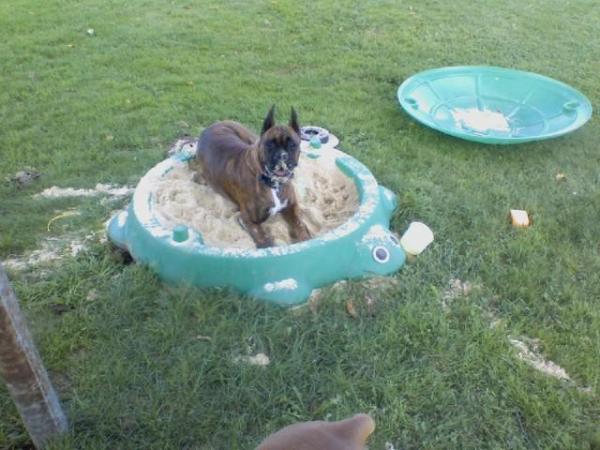 whines, honest! As usual with boxers, she also loves to cuddle! She also